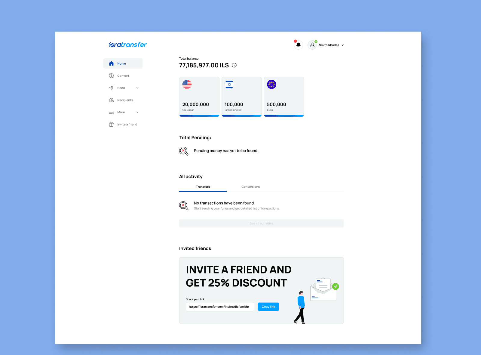 israetransfer - streamlines international money movement between Israel and global markets through an intuitive fintech platform.
