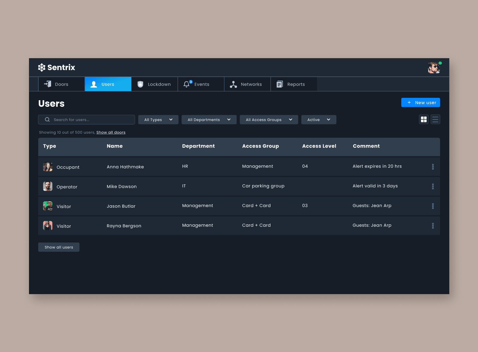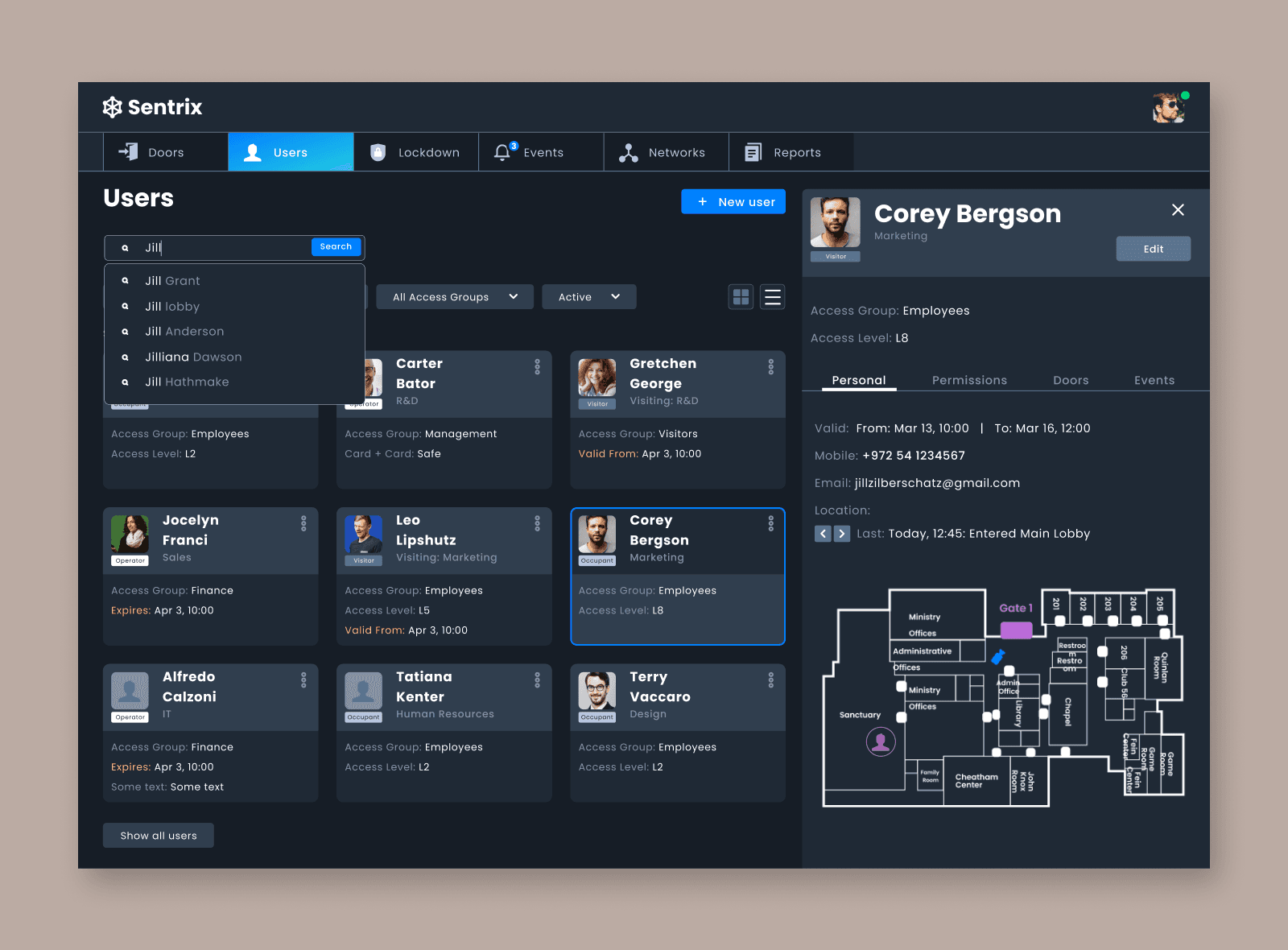 Sentrix - highly secure intelligent system access. is a complete server-client software management platform that enables setting physical access control policy across organizations.
